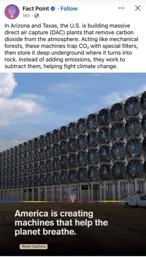 People will do anything other than planting more trees and looking after the worlds ocean ecosystem health. Most air is cleaned by algae in oceans and then trees in land, in that order. But people will just make machines for things which were taken care of by mother earth for millennia.