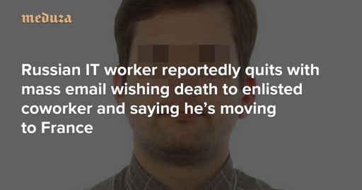 According to the Telegram channel Baza, the man had worked as a systems engineer at an IT company affiliated with Russia’s Skolkovo Innovation Center. He resigned in June, sending his goodbye email to 513 coworkers.