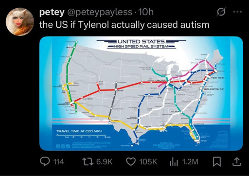 no it has to do with stopping at every damn town and there being mountains that slow the trains the fuck down from whatever speed y’all imagine them being able to go to like, 40mph. but please go off.