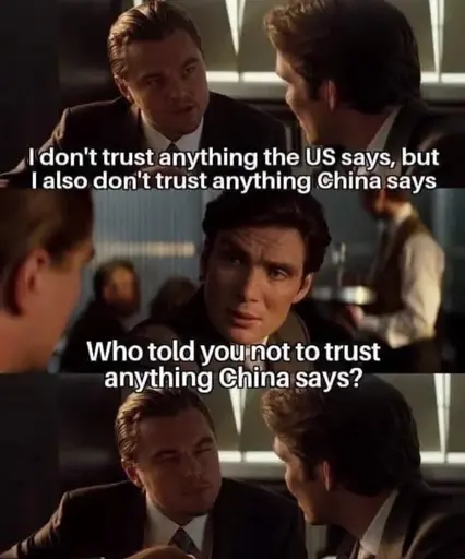 minus-squarebalance8873@lemmy.myserv.onelinkfedilinkarrow-up9·26 days agoLet’s start with: governments are untrustworthy being made of people So who told you china is trustworthy?