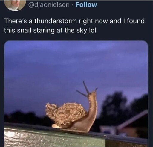minus-squarefuturefossil@lemmy.worldlinkfedilinkEnglisharrow-up1·18 days agoAnd then 5 snails jumped on a trampoline together