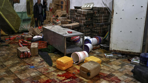 AFP pictures from the scene showed the blood-soaked floor of a building. People helped to clear up the damaged site afterwards, moving sheets of corrugated metal.