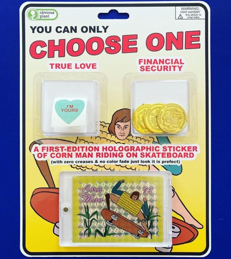 I think a first edition Corn Man sticker would bring plenty of financial security.